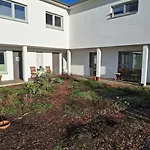 Henternにあるホテル Haus Achtsamzeitの6室の客室にバルコニー、テラス とライティングデスクが備わります。